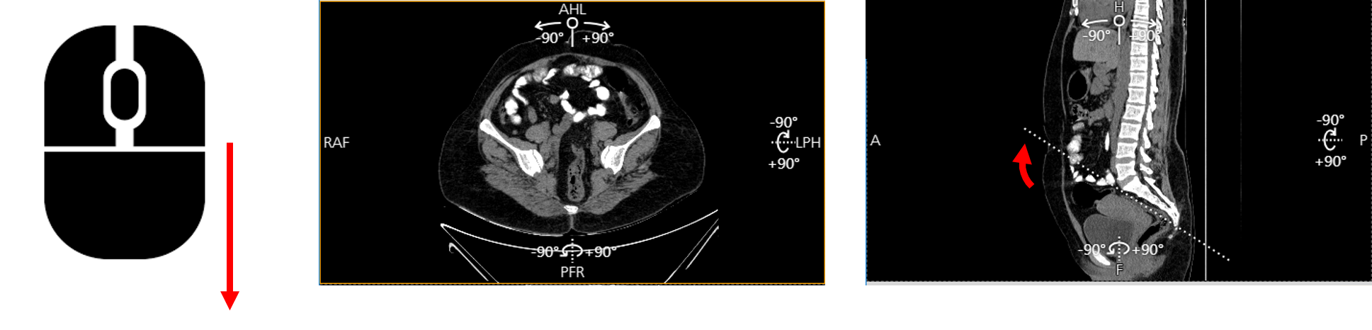 To turn on the Oblique Reformatting feature in Stradus, press the following button in the top button bar